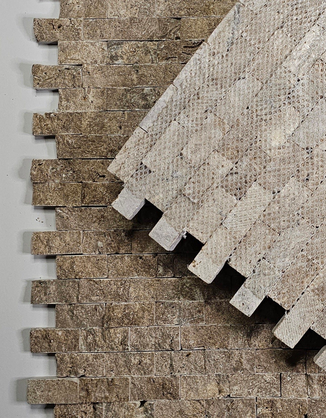 Naš mozaik je precizno sečen, montiran na mrežicu i spreman za brzu i laku montažu.