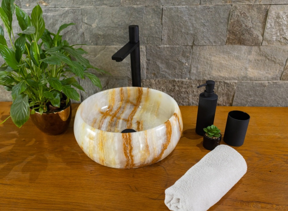 Unikatni umivaonik od prirodnog kamena oniks prečnika 40cm.
